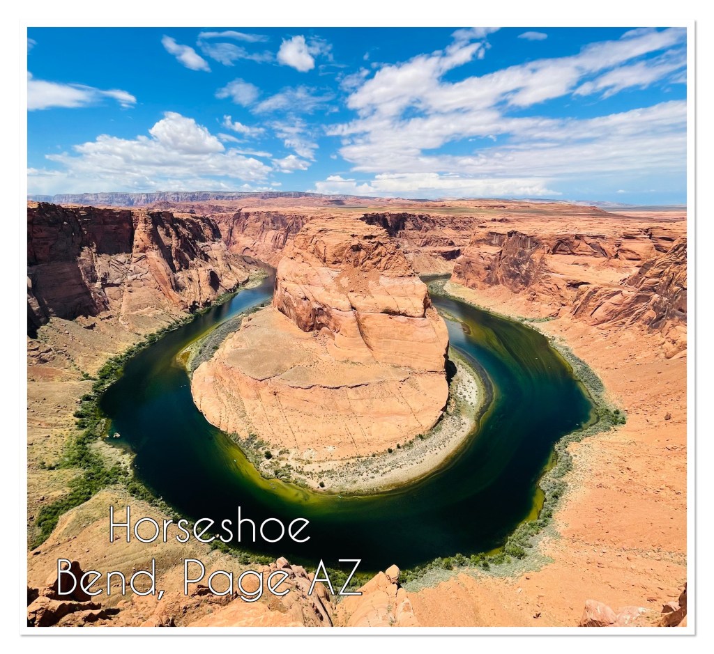 We were back at the hotel by 11:00, showered packed up and leaving by 11:30. Next stop was the Horseshoe Bend right down the road. We thought it was just a stop and lookout point. Um no … it was a 3/4 mile hike each way. In the sun. Uphill. Both ways. LOL well, it felt like it. Sigh, we had just finished showering and getting clean for the day. Oh well, nothing to do about it but suck it up. Honestly I didn’t expect too much from the view. Surprisingly, it was better than I thought because you actually can get the entire gooseneck in the picture. And the color of the water was gorgeous! There were all kinds of boats down there, mostly canoes, but there are also lots of choices in other boating excursions available as well. We knew we didn’t have much time there so we didn’t look into booking one of them. Maybe if there is a next time we will do that.