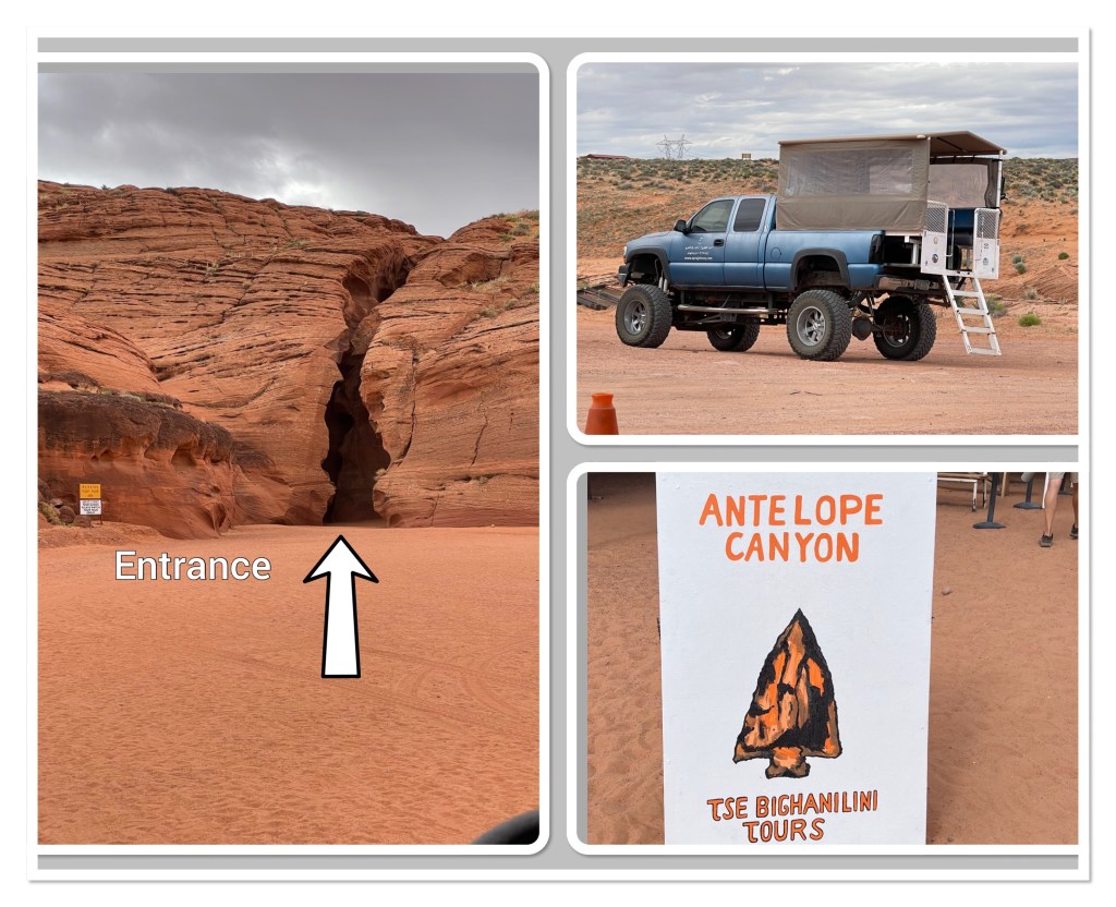 Check in was a breeze and we were delighted to find out we were in Group #1 of our time slot (which meant we were the first group in the canyon at that time – it was awesome!). Around 9:00 we started boarding the trucks. There were only 10 in our group and Wyatt was our tour guide. He informed us before we got started that the 3 mile drive there would get a little bumpy. He was not exaggerating. LOL It was like riding a bronco and we learned whenever he slowed down to go through a sandy patch a rough ride was on the other side. We had a couple of gentlemen from France, a delightful couple from Argentina, a fun lady from Missouri and the mom of a young family riding in the back with us (Dad and child rode up front). We all got pretty tickled with how we were being tossed about, and those of us with short legs that couldn’t reach the floor … well, they were just a swinging all over the place. The Argentina lady and I ended up laughing so hard about it that we both were crying. Great way to start, right?
