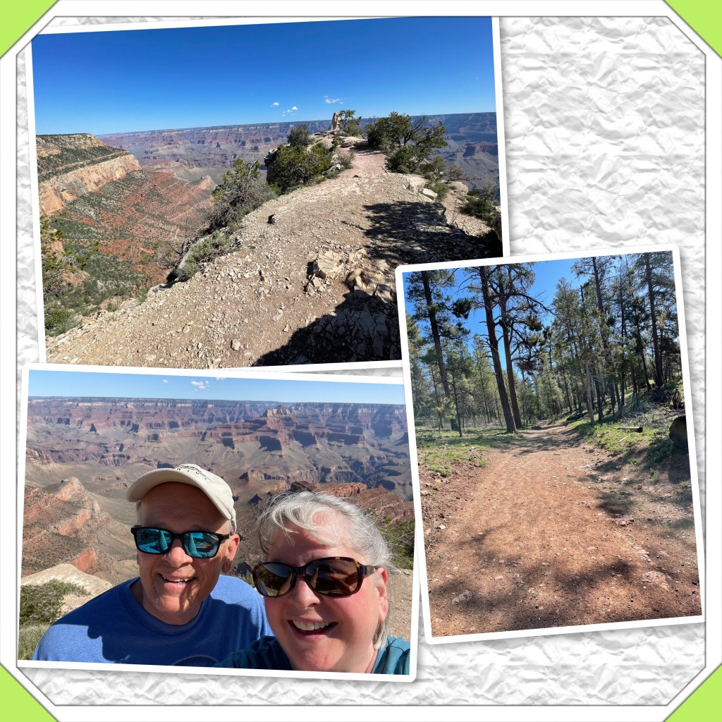 While neither one of us rose with the sun (5:20am) this morning the people behind us did and these cabins are not known for being quiet. I dozed until maybe 7:00, got a couple of cups of coffee under my belt (didn’t help much) and we were off by 8:30. Shoshone Trail is an easy 2 mile round trip hike not far from the lodge with an incredible view of the canyon at the end. They also tease you with the possibility of seeing elk on this trail – but we didn’t. There were some other hikers we encountered but not many – it’s not one of the “popular” hikes for some reason, which we were thankful for.