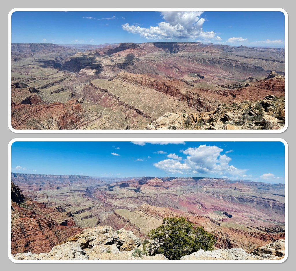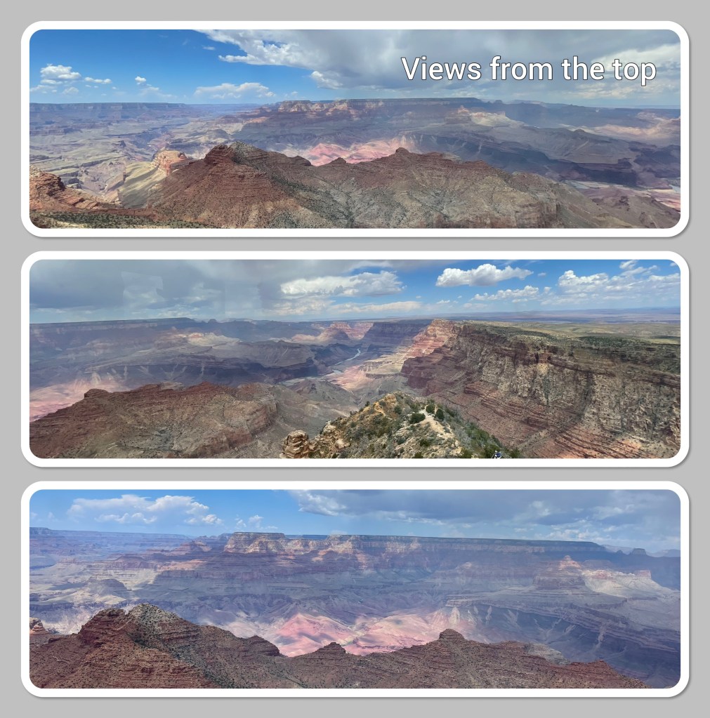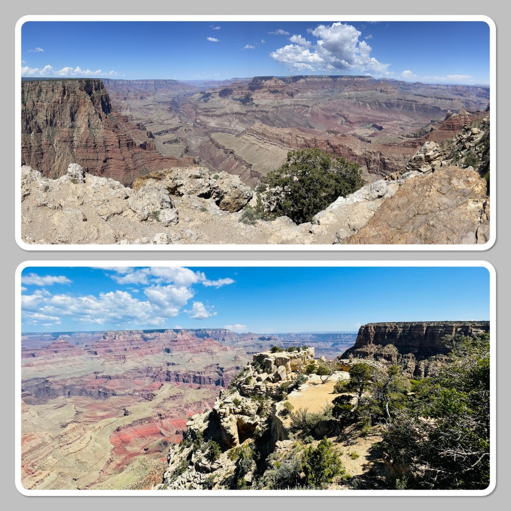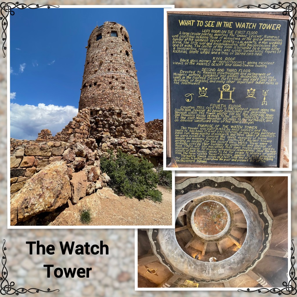From there we drove the rest of the rim and stopped at the various points until we reached the eastern end. The Desert View area has large restrooms, a market place, shopping and the Watch Tower (built in 1932). We walked around and took in the views making our way to the tower. It’s free to go up to the top (donations appreciated) but they stagger the amount of people and times. It’s really cool once you start ascending. There are four floors and things to look at on each one before going to the next floor. The replicas of petroglyphs and pictographs fill the walls and ceilings honoring the lives and traditions of the Southwest Indians. It really is amazing.
